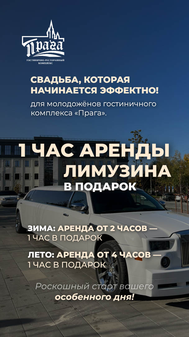 1 час аренды лимузина в подарок для молодожёнов ГК «Прага».